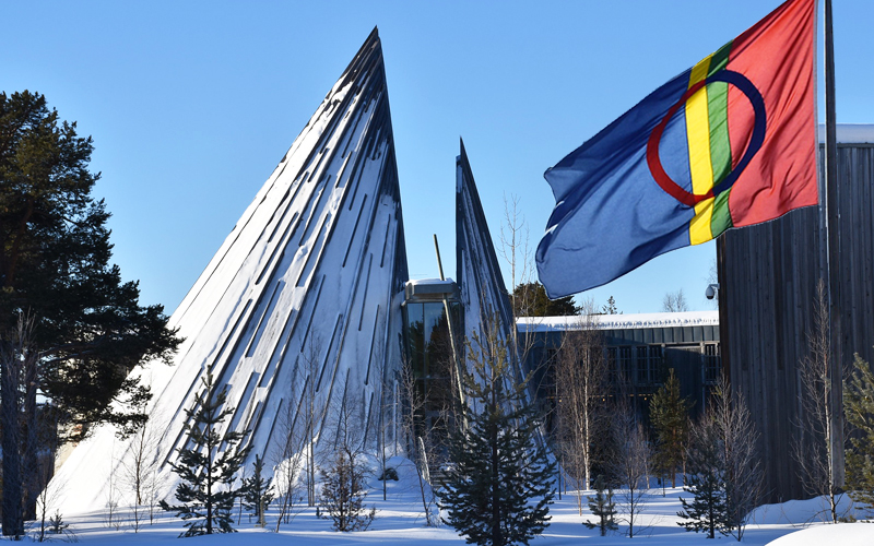 Sametinget og det samiske flagget (foto: Sametinget/Åse Pulk).