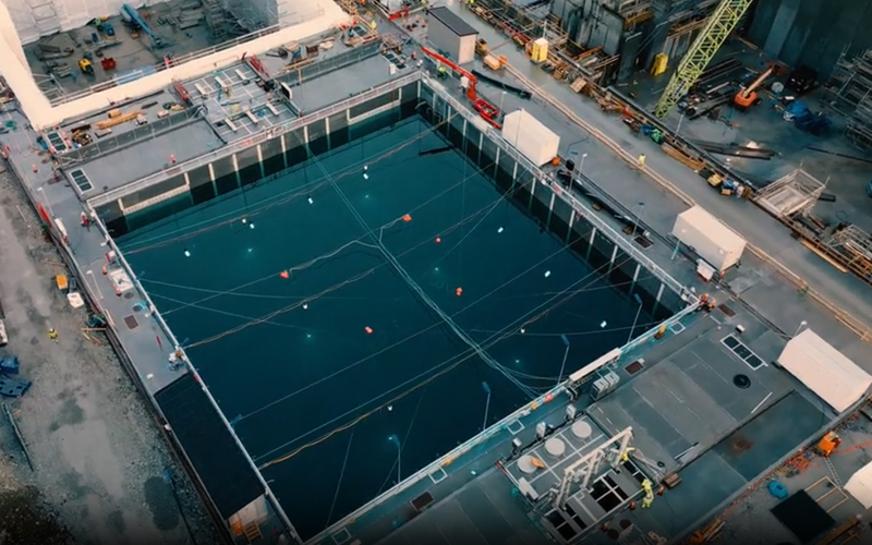 Snart starter monteringen av de prefabrikkerte betongveggseksjonene som allerede er produsert for de neste bassengene.