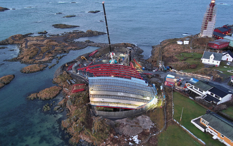 Siden i juni har det helt spesielle bygget reist seg i Sløyken, området rett sørvest for Andenes fyr.