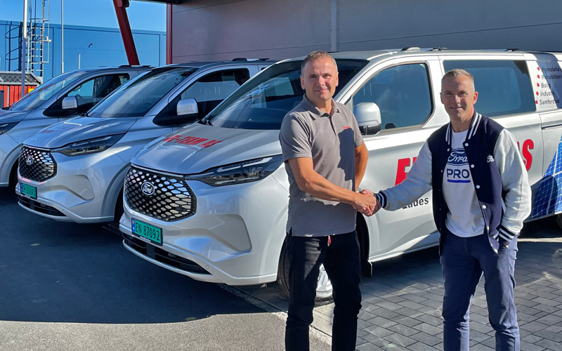 Nye elektriske Ford Transit med firmalogo (foto: Biltrend).