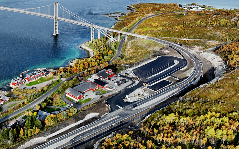 Møteplass for buss, parkering for vogntog og utfart ved Tjeldsund-kroa (foto: Anita Arntzen/Skanska).
