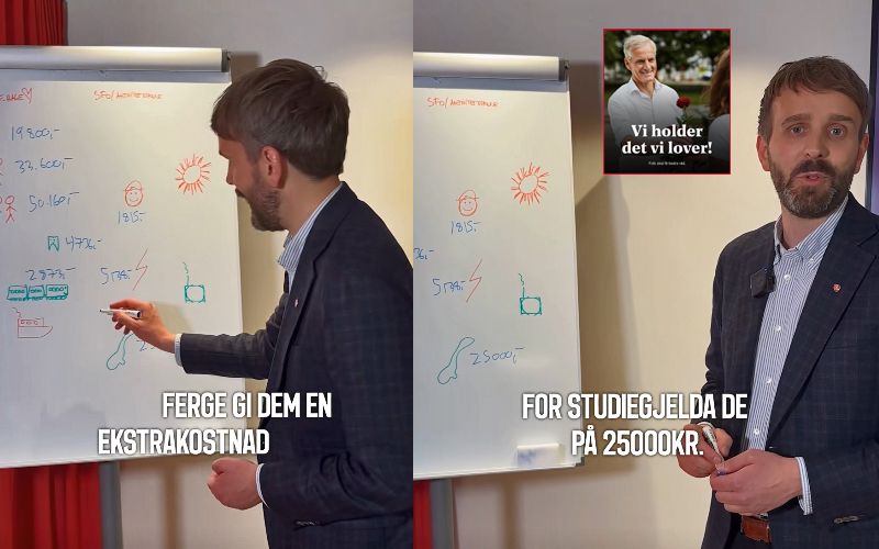 Her ble det advart mot Høyre og FrP, som ifølge Vestre ville kutte gratis ferger til en verdi av 38.000 kroner pr år for en pendler.