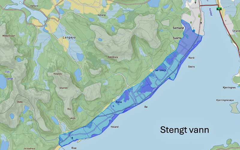 Vannet stenges fra Natland til Rise på onsdag (foto: Sortland kommune).